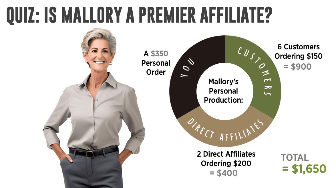 c) My personal order once customers and direct affiliates orders equals at least $1500 for the month